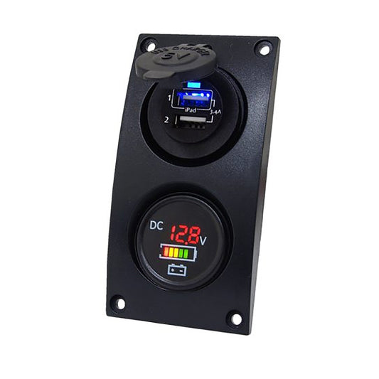 Blue Sea IP66 4 Position Circuit Breaker Switch Panel With 12V Socket - 2.1A USB Charger.