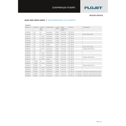 Flojet 4000 Series Four Self Priming Diaphragm Piston Demand Pump