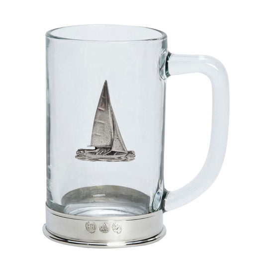 Nauticalia Nautical Glass Tankard With Pewter Base And Anchor / Salmon / Yacht Badge