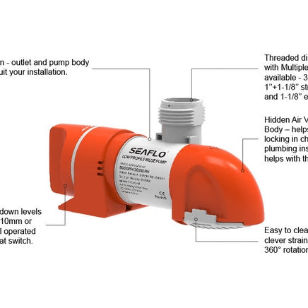 SEAFLO Low Profile Bilge Pump 800GPH Automatic Auto Timer Sensing 14b Series - 12v
