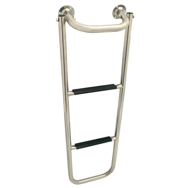 Made of 25mm marine grade stainless steel tubing with black non slip plastic steps. Suitable for most hulls.