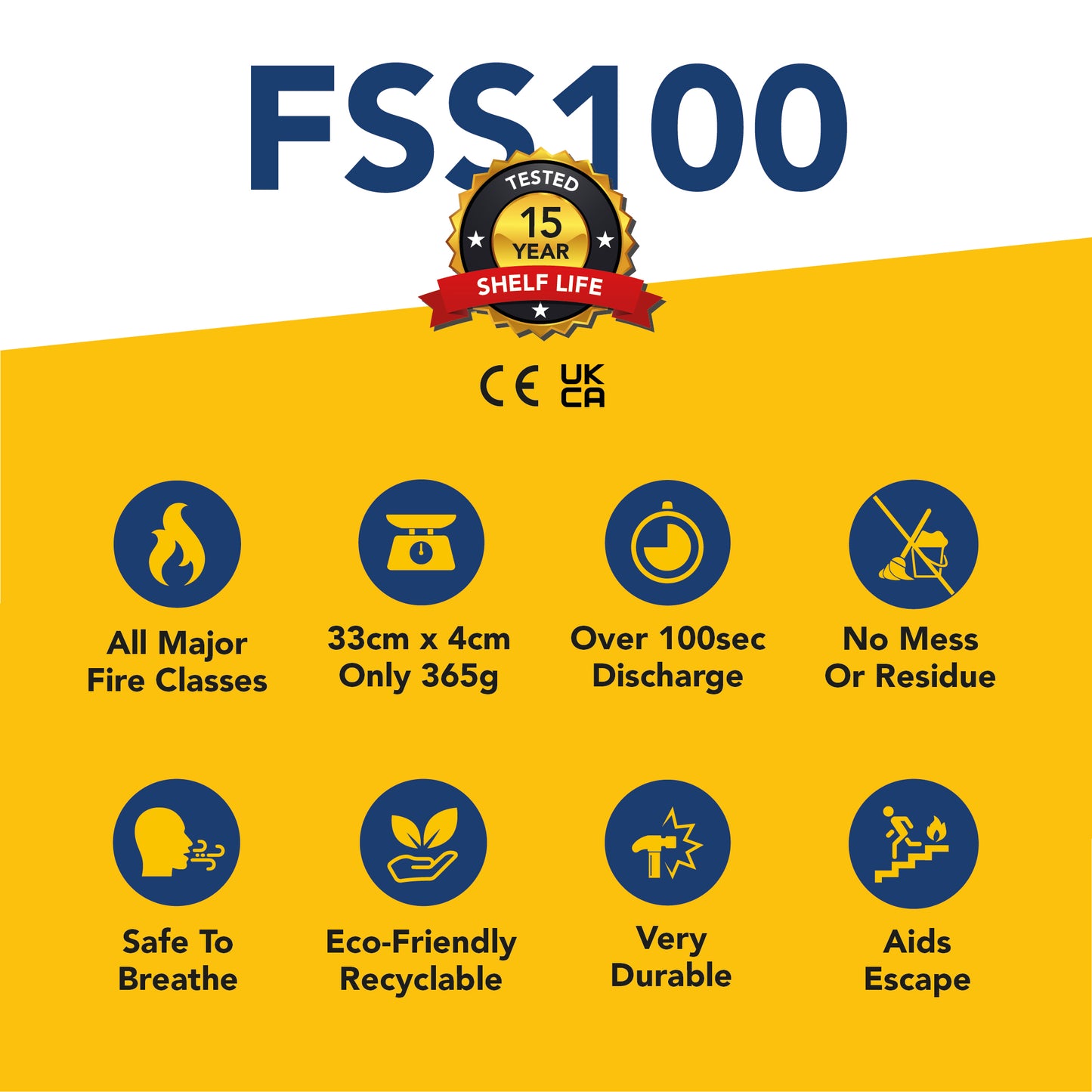 Certified to extinguish key major fire classes (A, B, C, Electrical & F)