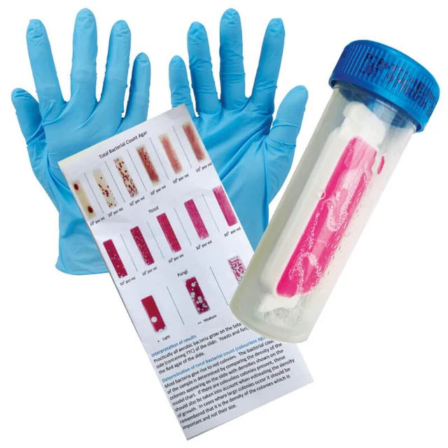 - A dip-slide test piece to detect bacteria, yeast, and fungi