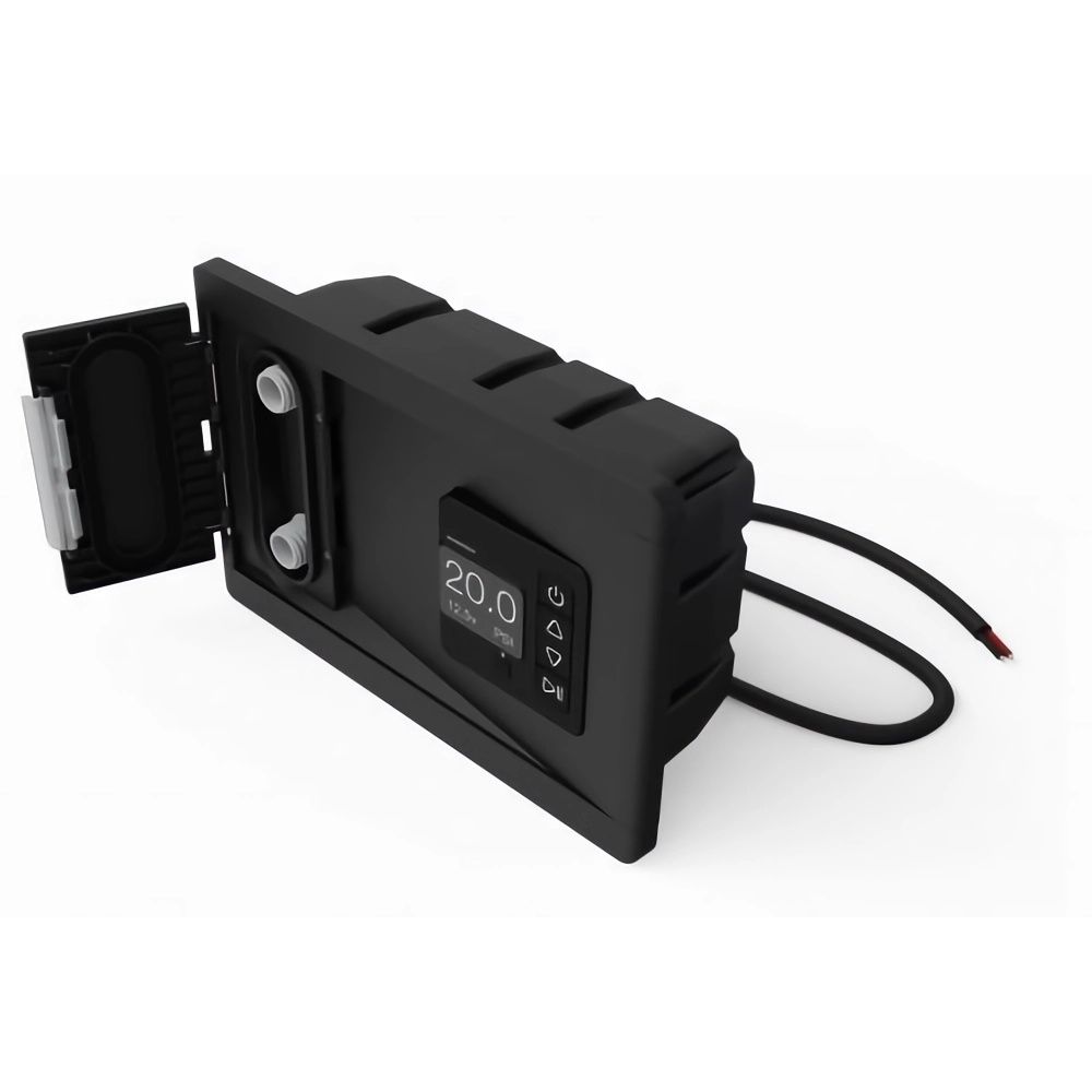 The side - The minimum cavity depth required is 110mm/4.33", and it can be installed at an angle ranging from +10º to -30º from vertical. The power cable length is 500mm (20”) with a wire gauge of 2.0mm2 (14 AWG), please note that there are no end-user serviceable parts.