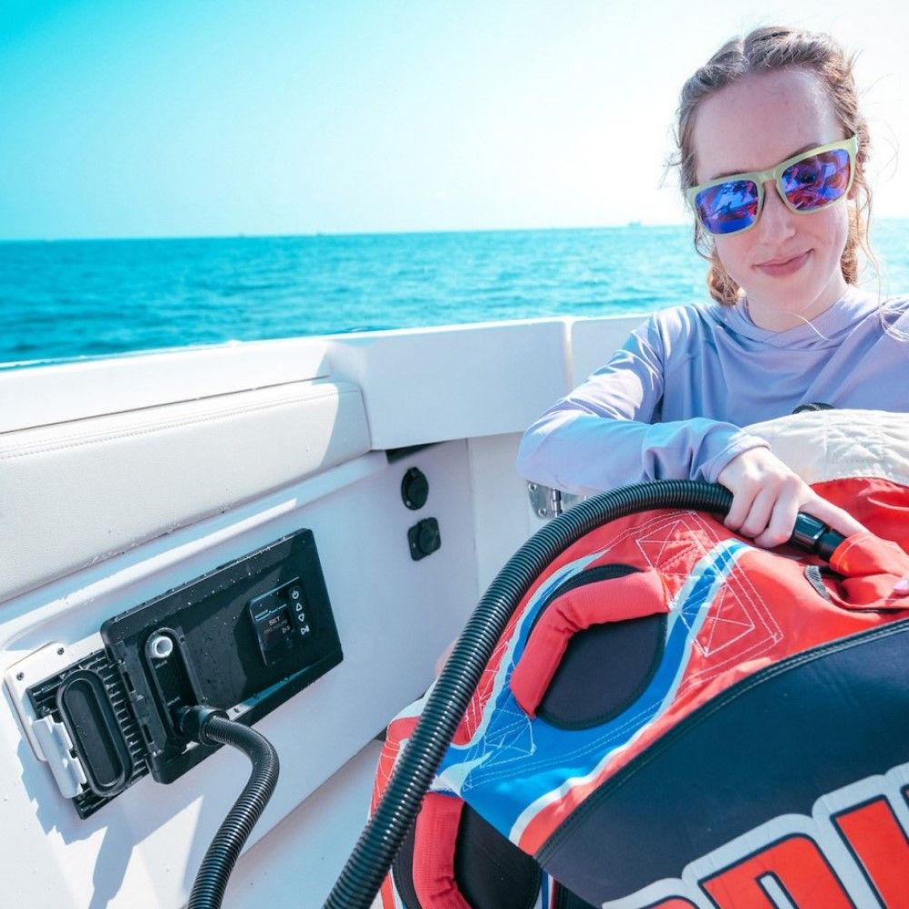 Featuring next-gen air pump technology to provide fast, effortless inflation (and deflation) for all on-water toys. Compact and shallow, ATMOS fits into almost any panel on board such as seating, consoles, or near the swim platform. Now have ready-to-go air, right where it’s needed, for even more family fun on the water.