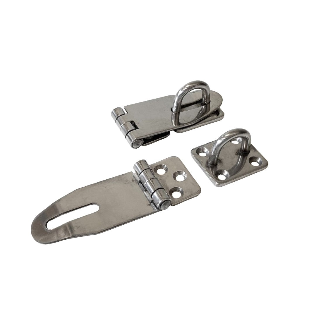 Stainless Steel (304). Dimension given is when hasp is closed. 33mm x 70mm