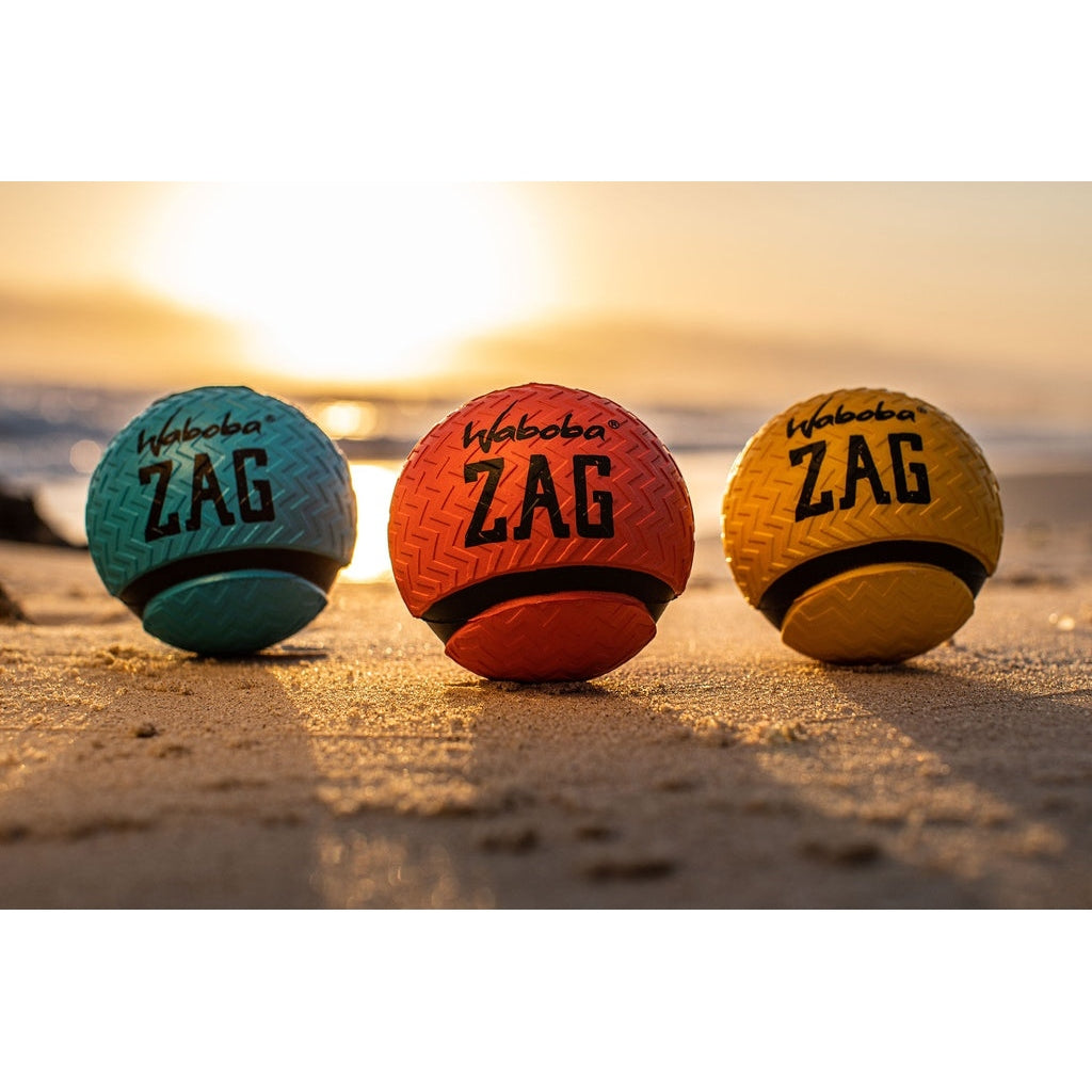 When others zig at the beach with boring toys, you zag. ZAG features a sporty grip with its raised zig zag texture. Its unique design is engineered for more athletic play in the ocean, lake, or pool. The Waboba ZAG is excellent for Wabobians looking for more grip from our foam line of water bouncing balls.