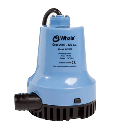 | BE2002 | Orca Submersible Electric Bilge Pump 2000gph 12 V | Standard for use with a separate bilge switch | 12V d.c. | 2000 | Standard Submersible | Submerged in bilge |